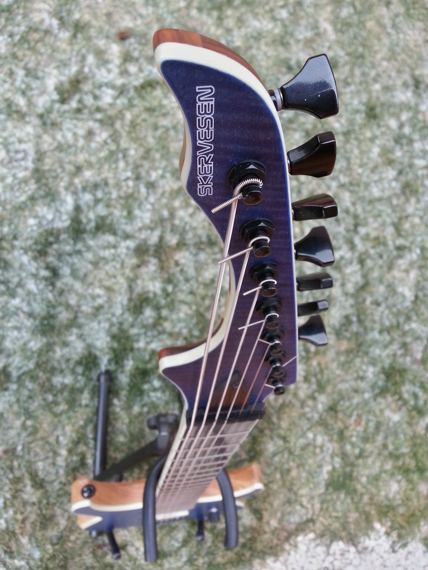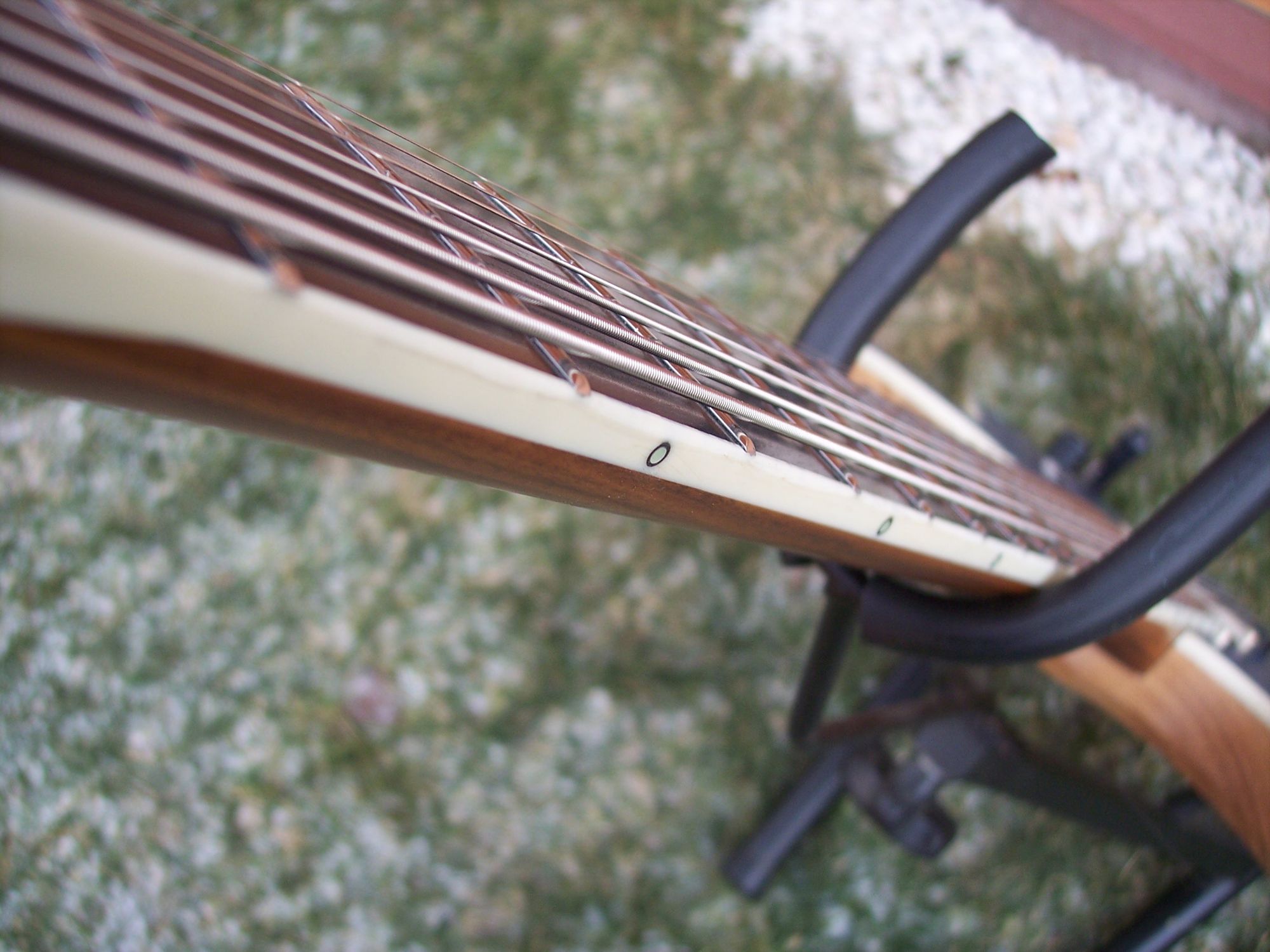 Prześwitujące warstwy gryfu. W ogóle nie widać łączenia bindingu główki i gryfu.