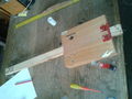 Jako gryf posłużył kawałek deski znaleziony w warsztacie, który oszlifowałem i polakierowałem. Nie pamiętam jaka menzura, na pewno jest to short-scale, muszę zmierzyć. Konstrukcja neck-through.