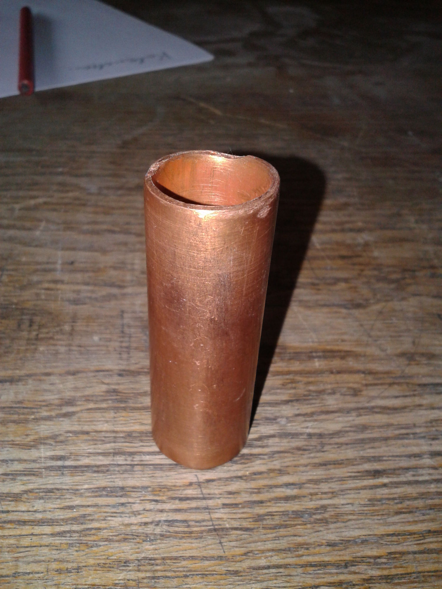 Do tego przyciąłem rurkę miedzianą (akurat taką znalazłem) na slajda. Miedź jest trochę za miękka do takiego zastosowania, ale daje radę. Gdzieś mam jeszcze szklanego slajda z szyjki butelki, ale jest trochę niewygodny.
