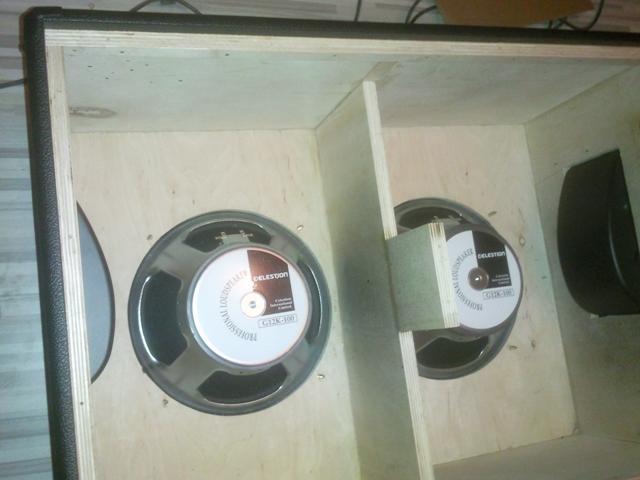 Kolumna jest wykonana na profesjonalnym poziomie. Nie dopatrzyłem się żadnych mankamentów. Tolex równo i schludnie położony, wkręty solidnie dokręcone i porządne drewno. Blacha poprawnie pomalowana i przykręcona odpowiednią ilością śrub. Kolumna jest trochę niestandardowo wykonana, podobnie do paczek basowych. Ze względu na to, że maskownica jest przykręcana i jest do ciężkich brzmień, front został wklejony na stałe, wstawione zostało środkowe wzmocnienie, a głośniki są przykręcane od zewnątrz. Zapewnia mi to sztywną i odporną konstrukcję, oraz możliwość szybkiej i bezproblemowej wymiany głośników  :D.